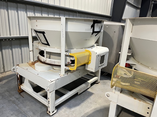 "As Is, Where Is" Unused and Uninstalled Lancaster Model TF-60 Rotary Table Feeder. size 60". 105 Cubic Feet Working Capacity. 12.5 HP Motor Rating. Built in 2014. The Lancaster TF60 Table Feeder has a holding capacity of 4300 liters (150 cuft), or roughtly 1.5 mixer batch. Total mixer cycle, including charging and discharging is nominally 10 minutes, producing 10 mtph maximum per mixer. This maximum rate assumes that there is no delay elsewhere in the system including material feed and demand downstream.