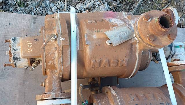Used 380 m3/hr 316 stainless steel liquid ring vacuum pump, manufactured by Nash, type Nash TCM-2, 0.098 barg (45mm vacuum) @ 50 degrees C, absorbed power 16kw, 1750rpm, double mechanical seal, driven by 37kw, 60Hz, 400 volt motor, with a sealant cooler