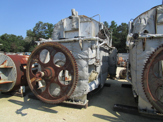 Installed and never used Bepex torus disc carbon steel dryer. Model 60-14. Built in 1986. It was designed to be used as a 1st stage hydroextractor to process 9.5 Short tons/hr of sludge; Designed for continuous operation. Material of construction is Carbon Steel. Vessel rated MAWP 15 psig/full vacuum @ 385 degree F, jacket rated MAWP 190 psig @ 385 degree F. The rotor is 60" diameter x 14'0" long, and is hard faced. The rotor is cored for steam heating and rated MAWP 190 psig @ 385 degree F. Heating medium is steam. Working volume 265 cubic feet. Total heat transfer area 1235 square feet. Trough is 69" wide x 177" long x 84" high with a vapor dome. Total height with dome cover is 154" high. Panel coil jacket on 25% of the dome cover. Continues product flow with retention time is controlled by adjustable product discharge weir. Rotor had hollow discs, and is chain and sprocket drive, 56 rpm output gear box, Agitator 12 rpm speed. Motor 100 HP, 3/60/460 volt 1800 rpm. Outboard bearings, packing glands with N2 seal purge, Johnson rotary joint on shaft. Openings: top vacuum cover - 1-24" with cover, 3-1 1/2", 3-10"; 24" side top with cover; side end discharge Weir access opening with cover 17" x 30"; 1-12" solids discharge bottom end. Approx dimensions 294" long x 84" wide x 154" high.
