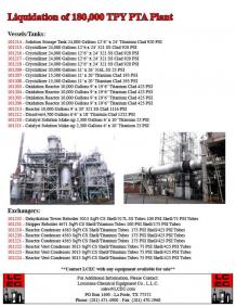 LIQUIDATION OF PTA PLANT Individual items for Sale
