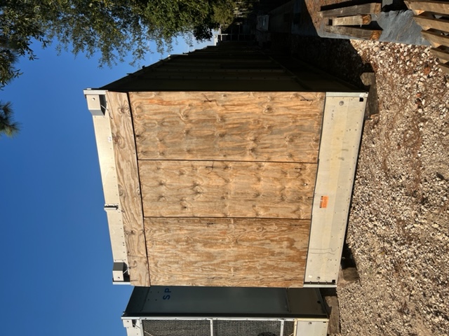 Used cooling tower #4. Mfg. by Marley (SPX), Model #NC8405UAN2BGF. type NC Series Crossflow. Approximately 1650 gpm capacity. Approximately 550 tons. Galvanize housing with stainless steel basin. 50 hp fan drive rating. 10'0" wide x 20'0" long x 12'0" high without shroud. See Pump #'s 114578 thru 114582.