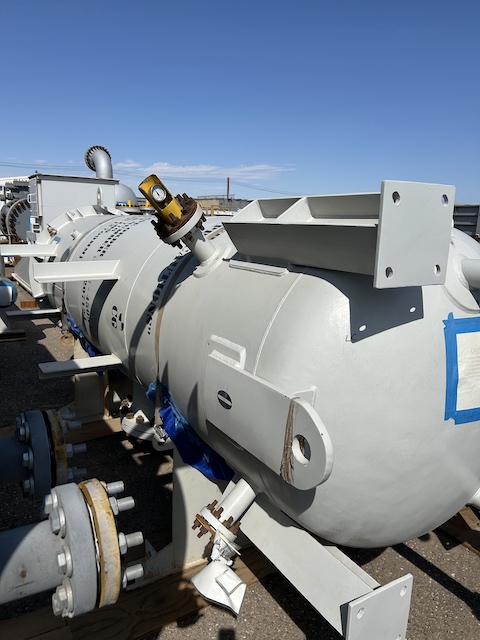 Unused 1017 gallon vertical carbon steel vessel. Plant air receiver for bleaching filters. Mfg. by Praj (India) in 2023. 4'0" diameter x 9'6" T/T. Dished heads. On skirt support. Under Nitrogen Purge.