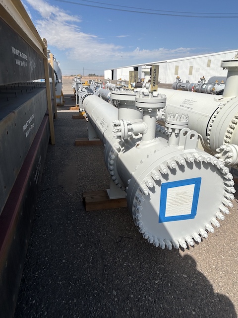Unused 832 sq. ft. vertical heat exchanger. Mfg. by Fabsco Shell and Tube in 2024. 9.17 x 1.1 Design duty (MMBTU/Hr). Shell Design Rating: 150/FV psi @ 350 deg. F. Tube Design Rating: 120 psi @ 150 deg. F. Shell mawp 152/FV psi @ 350 deg. F. Tube mawp 146 psi @ 150 deg. F. 23.25" x 168". Stripper Overhead Trim Condenser. Under Nitrogen Purge.