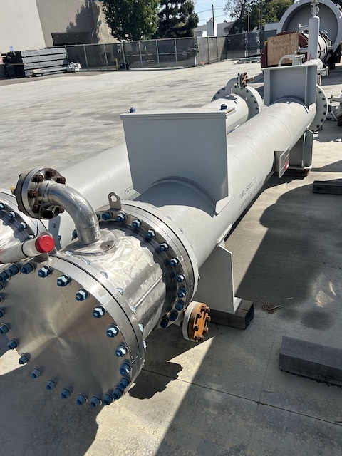 Unused 327 sq. ft. horizontal heat exchanger. 1.13 Design duty (MMBTU/Hr). Mfg. by Southern Heat Exchanger in 2023. Shell: 150FV psi @ 375 deg. F. Tubes: 161FV psi @ 375 deg. F. 20" X 180". Aerobic Reactor Heat Exchanger. Under Nitrogen Purge.