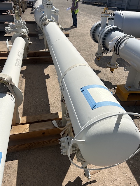 Unused 327 sq. ft. heat exchanger. Mfg. by Fabsco shell and Tube in 2023. 1.1 Design duty (MMBTU/Hr). Shell Design Rating: 400/FV psi @ 300 deg. F. Tube Design Rating: 310 psi @ 150 deg. F. Shell mawp 415/FV psi @ 300 deg. F. Tube mawp 400 psi @ 150 deg. F. 15.375" X 170. Lean Oil Cooler. Under Nitrogen Purge