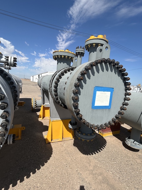 Unused 1234 sq. ft. heat exchanger. Mfg. by Wuxi chemical Equipment in 2023. 7.6 Design duty (MMBTU/Hr). Shell Design Rating: 250/FV psig @ 725 deg. F. Tube Design Rating: 325/FV psig @ 680 deg. F. Shell mawp 380.1/FV psig @ 725 deg. F. Tube mawp 475.8/FV psig @ 680 deg. F. 30" X 144". Product Fractionator Feed/Bottoms Exchanger No. 2. Under Nitrogen Purge