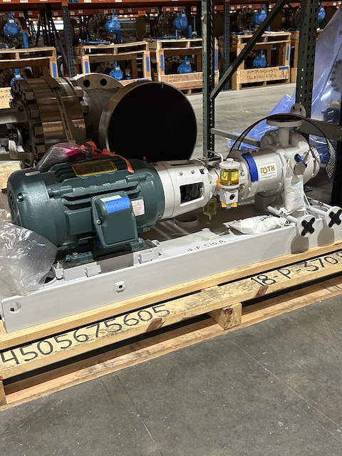 Unused Jacketed Magnetic Driven Single Stage Centrifugal Pump. Interstage Pump. Pump case has a steam jacket. Mfg. by Roth. Size 2x1.5. 15 gpm @ 758-493' head. 720 psi @ 170 deg. F. Casing: 316LSS Impeller: 316LSS. 20 HP motor.