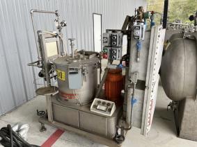 Used Portable Perforated Basket Centrifuge. Mfg by Ellerwerk in 1986, Model #931L-II. Hastelloy C. 500mm diameter x 320mm basket size. Maximum basket speed 3000 rpm, maximum loading weight 30Kg.