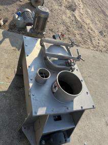 Used Double Ribbon Kason Blender. 18 cubic feet capacity. Inner Ribbon: 1 5/8"w x 3/8"thk.; Outer Ribbon: 1 1/4"w x 3/8"thk. Trough Dimensions: 35"L x 32"w x 26"d. Shaft diameter 3 1/4". Motor: 4 hp, 3 phase, 60 hz, 230/460 volts, 1763/15 rpm gear motor. Bottom center outlet. Top cover hinged bolt on with handhold. All stainless steel.