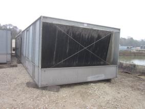 Used Evapco 850 ton cooling tower. Model number EDX 214 1424. Induced draft crossflow. 304 Stainless basin and galvanized casing. Built in 2002. Double stacked. Shipping: Top 22'L x 13'8"W x 9'5"H; Bottom 22'L x 13'8"W x 9'5"H;
