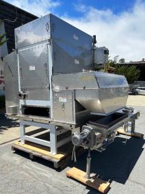 Used Oberlin Model OBF12 Automatic Pressure Filter System with reusable belt, vapor-tight stainless steel enclosure, including 316L stainless steel wetted parts. Filter is rated for 12 square feet of surface area, 45 PSI, 160 degrees Fahrenheit, approximately 40 gallons per minute, depending on application. The filter pumps dirty liquid through a tight media in a self-contained chamber, solids build into a cake on the media which catch more solids. Pressure continues to force the liquid through the densely packed cake and media. The filter pressurizes the liquid by pumping it into a chamber whose only outlet is through the unwanted solids on the media. The packed solids are discharged onto a reusable belt that conveys the solids into stainless steel hopper with horizontal, segmented screw to break-up and convey material to vertical auger discharge. Includes CIP spray bar to clean belt after solids are discharged Offered with PLC sequence control panel, gas-distribution panel, main electric disconnect panel and various other control panels. Manufactured new in 2019.