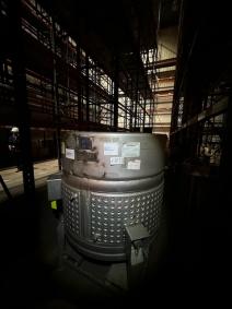 Used Portable Tote. 830 liters, 219 gallons. 304 Stainless Steel. With stainless NB coded dimple jacket.