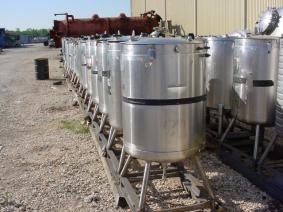 PORTABLE KETTLES; MFG. BY ACME INDUSTRIAL; WITH INTERNAL 316SS 3/8" DIA COIL; ON LEGS; (2) LIFTING TRUNNIONS;
