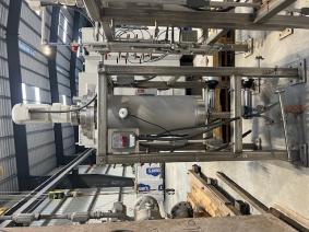 Unused 31 gallon (.12m3) vertical Production Vessel. Mfg. by SRI (Special Restvrijstaal Industrie BV) designed by GEA Messo PT in 2013. 12" diamter x 42" T/T. 304 Stainless Steel. Flat flanged bolted top and welded flat bottom. Stand mounted supports. 2.2 kw top center mounted with internal spiral type agitation. 13/64" shell wall thickness. All nozzles are sanitary clamped and the vessel is stand mounted with manual on/off controls for the agitator.