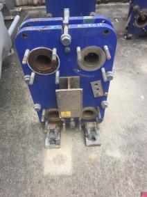 Used 7 sq. ft. Vertical Plate Exchanger, Mfg by Alfa Laval in 2015. .60 MM Plate Thickness, Model #TS6-MFG. EPDMP Clip On Plate Exchanger Gaskets. Previous Service: Desorbent Water Feed Heater.