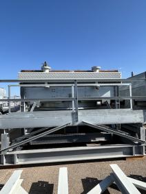 Unused Air Fin Cooler; Excess MP Steam Condenser. Mfg. by Fabsco in 2023. 2060 bare sq. ft. 43,387 extended sq. ft. 24'0" tube length. 24.36 Design duty (MMBTU/hr). 232FV design pressure barg @ 430 deg. F. design temperature. (2) 15hp fans. 328-1"od x .095mw. (2)8" inlets and (2)4" outlets. Under Nitrogen Purge.