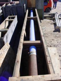 AGITATOR SHAFT; 5 1/2" DIA. SHAFT; 48" DIA. SPAN BLADES; 19' O.A.L.; LIGHT BLUE GLASS; 3 BLADE RETREAT CURVE TURBINE;