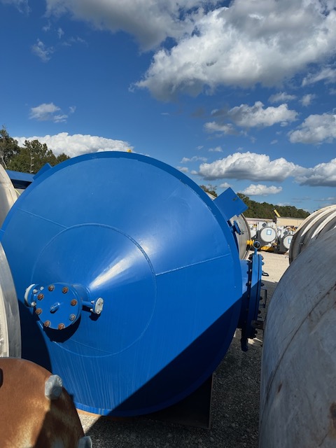 Unused 1017 gallon vertical carbon steel vessel. Plant air receiver for bleaching filters. Mfg. by Praj (India) in 2023. 4'0" diameter x 9'6" T/T. Dished heads. On skirt support. Under Nitrogen Purge.
