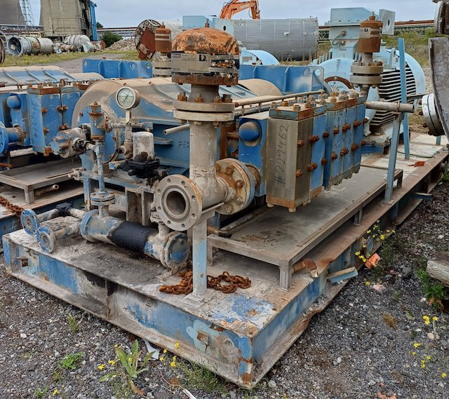 Used 24 m3/hr @ 3570m head 316 stainless steel hydrodynamic cleaning pump, 5 x pump heads, type Titano 3140/Q (Q53x120), manufactured by Peroni, discharge pressure 370 bar, suction pressure (min) 12.8 barg, 318 rpm, estimated 320 Kw, stage/bore 120/53.
