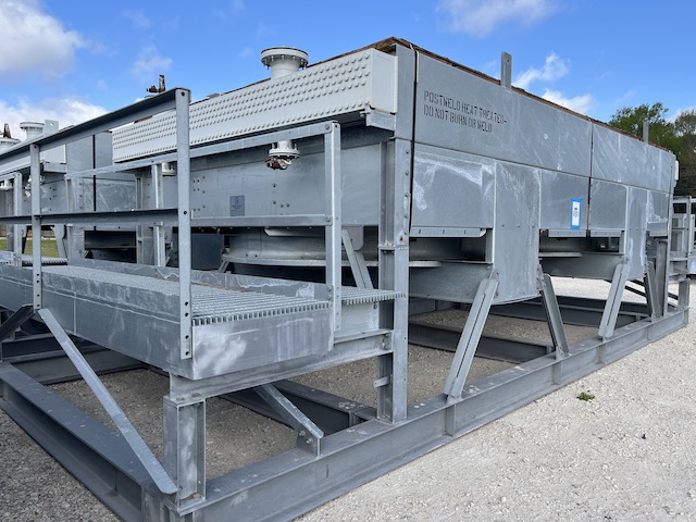 Unused Air Fin Cooler; Excess MP Steam Condenser. Mfg. by Fabsco in 2023. 2060 bare sq. ft. 43,387 extended sq. ft. 24'0" tube length. 24.36 Design duty (MMBTU/hr). 232FV design pressure barg @ 430 deg. F. design temperature. (2) 15hp fans. 328-1"od x .095mw. (2)8" inlets and (2)4" outlets. Under Nitrogen Purge.