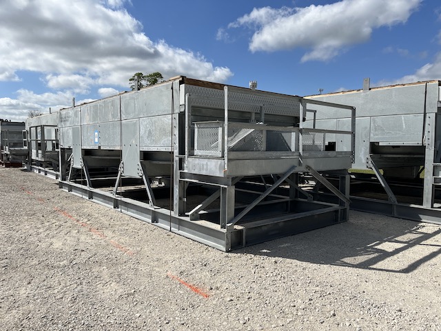 Unused Air Fin Cooler; Lean Amine Cooler. Mfg. by Fabsco in 2024. 2287 bare sq. ft. 48,027 extended sq. ft. 26'0" tube length. 41.1 Design duty (MMBTU/hr). 135FV design pressure @ 300 deg. F. design temperature. (2) 25 hp fans. 336-1"od x .083"mw. (2)4" inlets and (2)4" outlets. Under Nitrogen Purge.