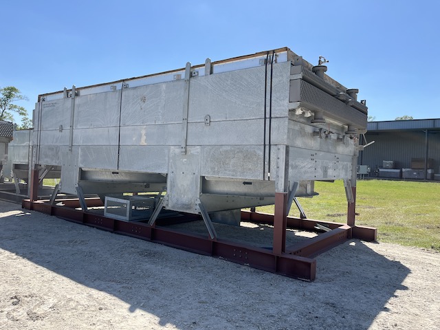 Unused Air Fin Cooler; Diesel Product Cooler. Mfg. by Fabsco in 2024. 4115 bare sq. ft. 86,425 extended sq. ft. 30'0" tube length. 51.9 Design duty (MMBTU/hr). 325FV design pressure barg @ 600 deg. F. design temperature. (2) 25 hp fans. 524-1" od x .12"mw. Has a steam coil and top louvers. With steam coil rated (2)3" steam inlets and (2)3" condensate outlets. (2)4" inlets and (2)4" outlets. Under Nitrogen Purge.