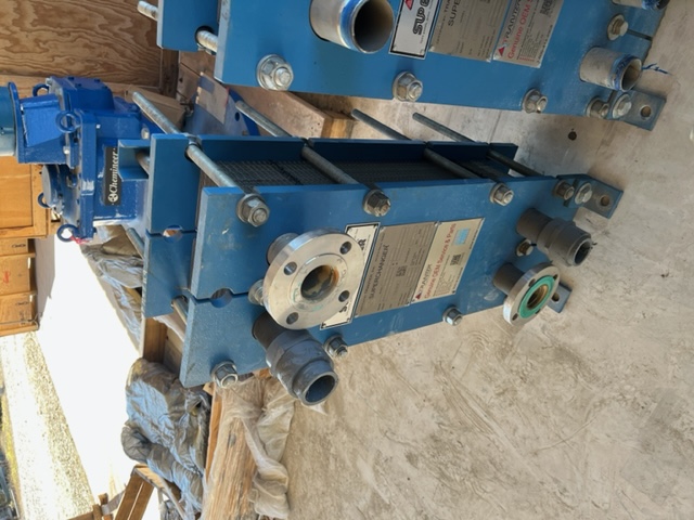Used 113 sq. ft. Plate Heat Exchanger. Mfg. by Tranter (Superchanger) in 2019. Model GCD-016-M-5-NR-77. 150 psi @ 212°F. Plate Pack Dimensions: 6.88" minimum. 7.06" maximum. (2)2" inlets and (2)2" outlets. 85 Max plate count for frame assembly, 77 plates @ shipment.