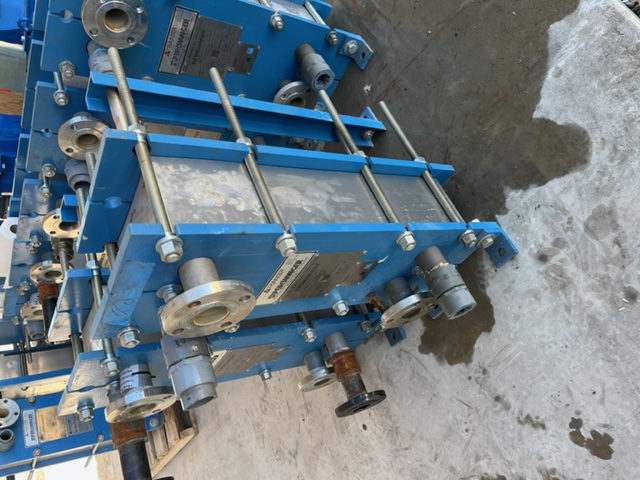 Used 113 sq. ft. Plate Heat Exchanger. Mfg. by Tranter (Superchanger) in 2019. Model GCD-016-M-5-NR-77. 150 psi @ 212°F. Plate Pack Dimensions: 6.88" minimum. 7.06" maximum. (2)2" inlets and (2)2" outlets.