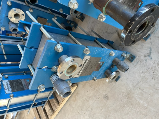 Used 113 sq. ft. Plate Heat Exchanger. Mfg. by Tranter (Superchanger) in 2019. Model GCD-016-M-5-NR-77. 150 psi @ 212°F. Plate Pack Dimensions: 6.88" minimum. 7.06" maximum. (2)2" inlets and (2)2" outlets. 85 Max plate count for frame assembly, 77 plates @ shipment.
