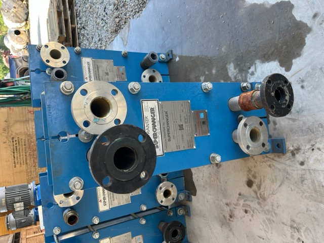 Used 113 sq. ft. Plate Heat Exchanger. Mfg. by Tranter (Superchanger) in 2019. Model GCD-016-M-5-NR-77. 150 psi @ 212°F. Plate Pack Dimensions: 6.88" minimum. 7.06" maximum. (2)2" inlets and (2)2" outlets.