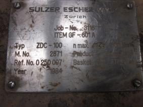 S/N 2870; NEW 1984; COMPLETE W/DRIVE MOTOR, BACKDRIVE, VIBRATION PROTECTION, CIRC OIL SYS, & CONTROLS. ALCOHOL SVC; CONICAL BOWL DESIGN; (CYLINDER-65.5", 10 DEG, -53");