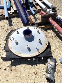 36" GLASS LINED MANWAY; INTERCHANGES W/PFAUDLER OR DIETRICH GLASS-LINED REACTORS; LIGHT BLUE GLASS; 6" TOP NOZZLE; W/SUPPORTS FOR AGIT; 3/4" WIDE X 6" LG;