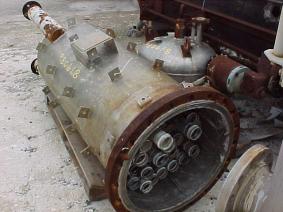 ON 3 LEGS; 8" CONE BOTTOM HEAD; FLANGED DISHED TOP HEAD; 92.5 GALLON CAPACITY; OPENINGS: BOTTOM 3" OUTLET; SIDE 6"; TOP HEAD 6", (2)1"; 26 CARTRIDGES (2"X 3'3" LONG ESTIMATED SQ.FT.;
