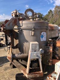 TMO CENTRIFUGE; BUILT IN 1995; 460 VOLT MOTOR; BATCH TYPE; 316SS PLOW TIP; 2640 # MAX. DESIGN PROCESS WEIGHT @ 850 G'S; BASKET SHELL ONLY IS ALLOY 2205; TOP LOAD-BOTTOM UNLOAD; WITH 9" TOP RING; 52 SQ. FT. SCREEN AREA; 33 CU. FT. MAX.LOAD;