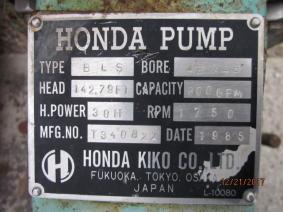 LATEX STAGE PUMP; HONDA PUMP; MFG. BY HONDA KIKO CO., FUKUOKA, TOKYO, JAPAN; 300 GALLON MIN AT 121' HEAD; BORE 4B X 4B; SPECIFICALLY DESIGNED FOR VISCOUS PRODUCTS LIKE LATEX;