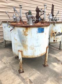 AGITATED TANK; ON LEG SUPPORTS; (4) INTERNAL WALL BAFFLES; 3 PITCHED BLADES; 2" OUTLET; WITH PNEUMATIC DRIVE;