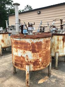 AGITATED TANK; ON LEG SUPPORTS; (4) INTERNAL WALL BAFFLES; 3 PITCHED BLADES; 2" OUTLET; WITH PNEUMATIC DRIVE;