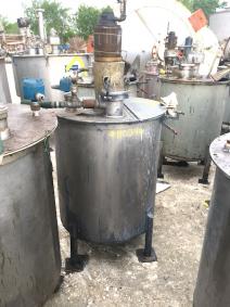 AGITATED TANK; MFG. BY GRACO IN 1988; ON LEG SUPPORTS; PART #616-303; (4) INTERNAL WALL BAFFLES; 3 PITCHED BLADES; 2" OUTLET; WITH PNEUMATIC DRIVE;