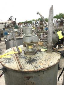 AGITATED TANK; ON LEG SUPPORTS; (4) INTERNAL WALL BAFFLES; 3 PITCHED BLADES; 2" OUTLET; WITH PNEUMATIC DRIVE;