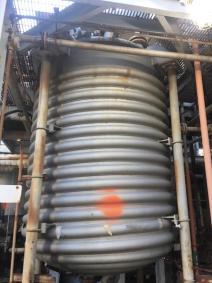 PREVIOUS SERVICE: TRIMETHYLAMINE; MFG. BY DEDIETRICH IN 1996; HALF PIPE JACKET; MOUNTED ON LUGS WITH LEG BRACKETS; MAIN COVER 30"; MANWAY 14" X 18" WITH SIGHT GLASS ASSEMBLY; TOP HEAD NOZZLE SCHEDULE: (1) 8", (4) 4", (2) 2" AND (1) 4" DRIVE NOZZLE; BOTTOM 4" NOZZLE;
