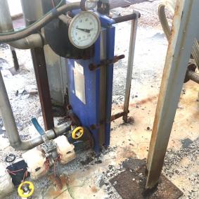 PREVIOUS SERVICE: 25% NaOH CAUSTIC; ESS-285; MFG. BY ALFA LAVAL; MODEL #16FG; BOTH SIDES RATED FOR 150 PSI @ 250 DEG. F.;