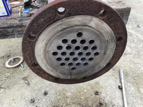 Used 47 sq. ft. heat exchanger, Previous Service: Acid Generation Column Condenser. Mfg. by Astro Metallurgical in 1984. Conical Heads.