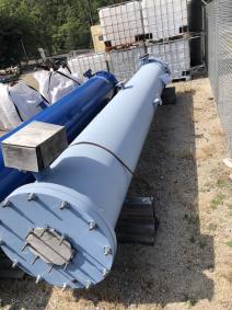 "As Is, Where Is" Unused Karbate Poly Bloc Heat Exchanger. Teflon Impregnated. Mfg. by Mersen in 2018. Model #PB24-20-TH-1-2. (1) Pass Axial, (2) Pass Radial, (20) Blocks. Graphite Block data. Total process side H.T.A. 794 sq. ft. Diameter 23.622". Thickness 9.4491". Axial Holes (504) 0.3906" diameter. Radial Holes (336) 0.3906" diameter.