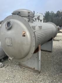 #1 Side Fraction Tank. Used 800 gallon 304L Stainless Steel Sanitary Horizontal Vessel. Mfg. by Walker Stainless in 1997. 304LSS dimple jacket on bottom half of shell O.D. 3'6" x 11'2". 30 FV @ 270 deg. F. On saddle supports. Nozzles: Shell .75", 1", 1.5", (2)2", 3", 24" manway. Heads 1.5", (2)4" glass.