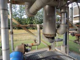 Used 832 Sq Ft Vertical Shell and Tube heat exchanger. Manufactured by Rubicon in 1998. Carbon Steel Shell rated 200 PSI @ 450 deg. F. Hastelloy C276 Tubes rated 50 PSI/FV @ 350 deg. F. 222-1"OD x 16 BWG tubes 14'0" Long, 22" shell diameter x 17'2" O.A.L. With expansion joint. Model #SC22C1-168VE;