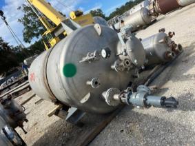 Used 1500 gallon vertical 316L stainless steel pressure vessel. Mfg. by Wolfe in 2002. 66" diameter x 100" T/T; 150FV @ 475 deg. F. Dished top and bottom. On Lug supports. (EKR-12 Receiver)