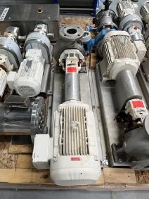 Unused Temper Pump Stage 2 Centrifugal Pump. Stainless Steel, Horizontal, Model MFG-KSB, 80 m3/hr capacity, standard type flange connections. With electric motor, 7.5 KW, 1770 rpm drive speed, 230/480 drive voltage.