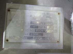 Used 750 gallon vertical pressure vessel. Mfg. by Rolock in 1986. 316L stainless steel. Shell rated 90 psi @ 300 deg. F. Top 20" manway. Openings: top head (6)6", bottom head (1)4" CBO. . Dished heads.