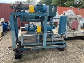 Used Vacuum Pump/Blower System consisting of (1) 2 stage liquid ring vacuum pump. Mfg. by SIHI, Model # LPHR55312BN117020, 20 hp, 1755 rpm, 230/460 volt electric motor and (1) positive displacement rotary blower. Vertical flow positive displacement rotary blower. Mfg. by MD-Kinney (Tuthill), Model #4012-90L2. 4" NPT inlet & outlet., carbon steel, pumping speed 87-682 cfm, max pressure differential 15 psi, ultimate vacuum 508 mbar mawp 100 psi, max temperature rise 300 deg. F., 15 hp, 230/460 volts, 3510 rpm electric motor.