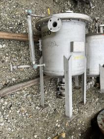 Used 53 gallon vertical R2010 receiver. Mfg. by Alloy Fabricators in 1997. 2'0" diameter x 2'0" T/T. Shell: 304 stainless steel, 15FV psi @ 104 deg. F. Coil: 304 stainless steel, 33 psi @ 278 deg. F. Internal Coil. Flat flanged top and dished bottom, on leg supports.
